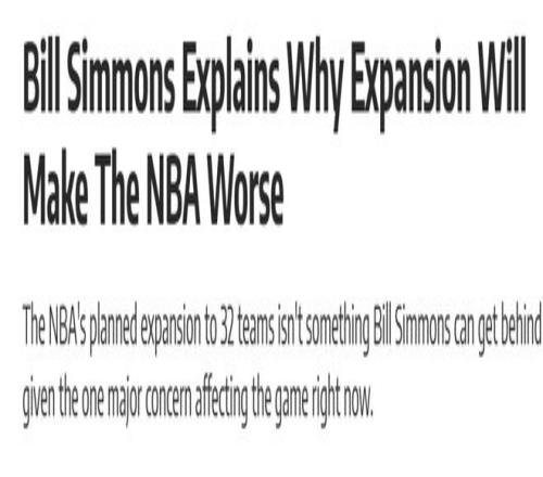 经历过上一次扩军、曾拿到得分王的麦迪直言:联盟人才不够,撑不起两支新球队。勇士前锋格林也持相同观点。知名球评比尔-西蒙斯则提出了另一个更大的顾虑。