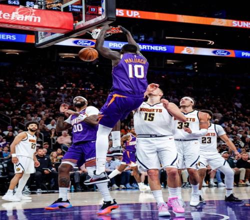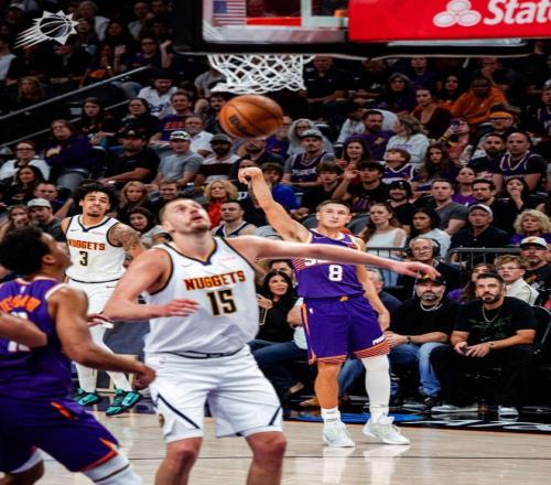 北京时间3月25日,NBA常规赛继续进行。掘金奔赴客场与太阳展开对决,此役是双方本赛季的第三次交手。前两次都取得了胜利的丹佛,渴望延续强势表现。排名西部第4的掘金,志在巩固当下排位。沃特森继续伤停,掘金的首发五虎是约基奇、穆雷、卡梅隆约翰逊、阿隆戈登与布劳恩。马克威廉姆斯、狄龙布鲁克斯、邓恩与科菲伤停,菲尼克斯的首发五虎是德文布克、杰伦格林、吉莱斯皮、罗伊斯奥尼尔与伊戈达罗。两大劲旅,在此役上演了激烈厮杀。